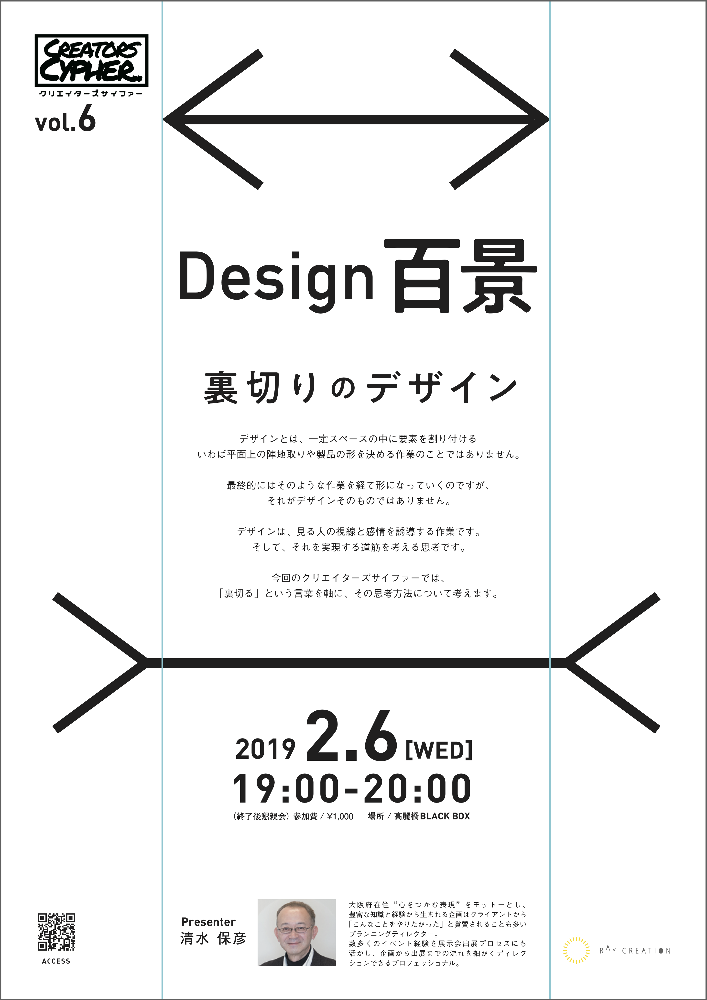 2019.2.6 クリエイターズサイファー vol.6『Design 百景 ー裏切りのデザインー 』を開催します。